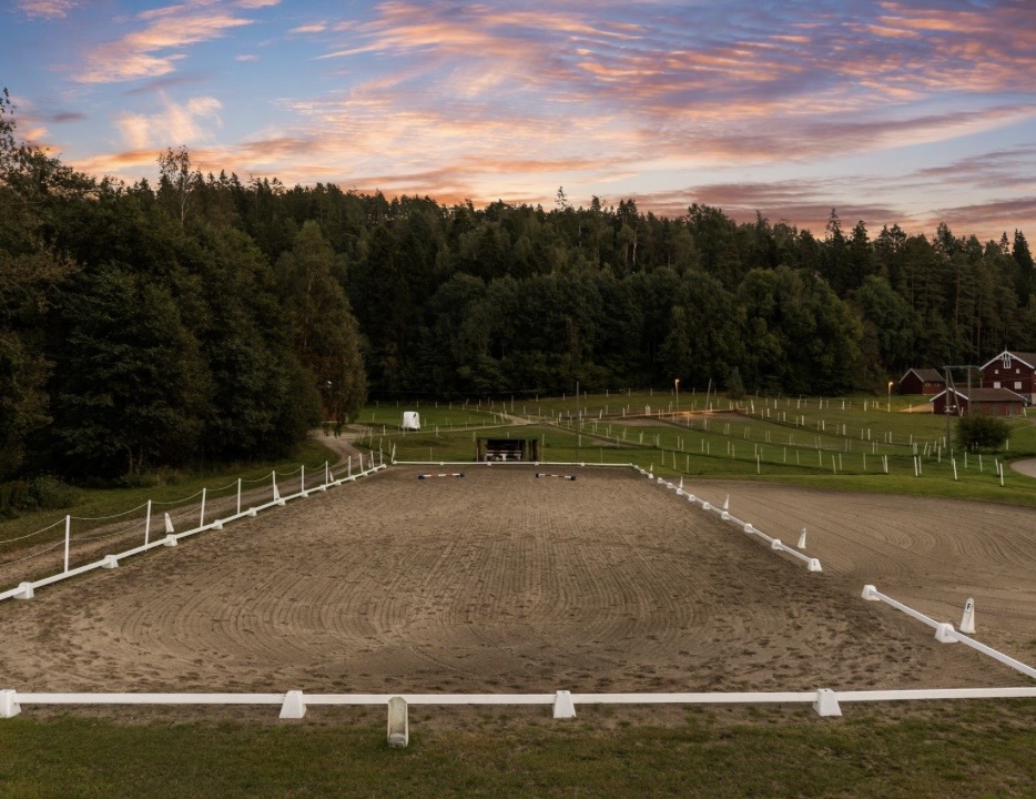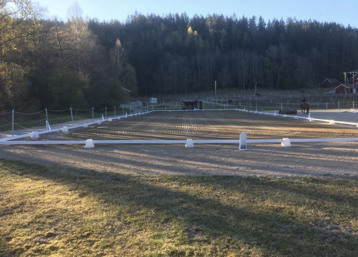 Stor utebane med plass til dressurrail